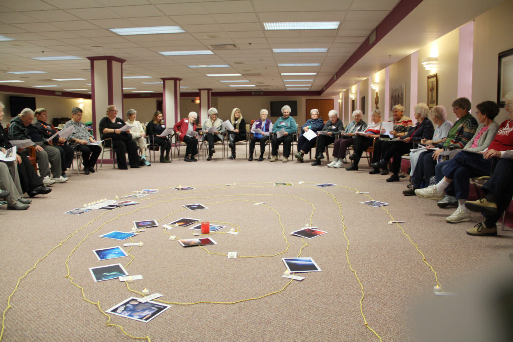 We sat in a circle and at our feet was a visual representation of the universe story, borrowed from the Well Spirituality Center. There was a very long rope that spiraled across the floor. At certain points along the rope were images representing the great beats in universal transformation—the big bang, the advent of planetary flora, the time of the dinosaurs, the beginning of humanity, and the many milestones of human achievement. It was humbling to see our story set in that context, to know that each life was less than a flicker of the candles.