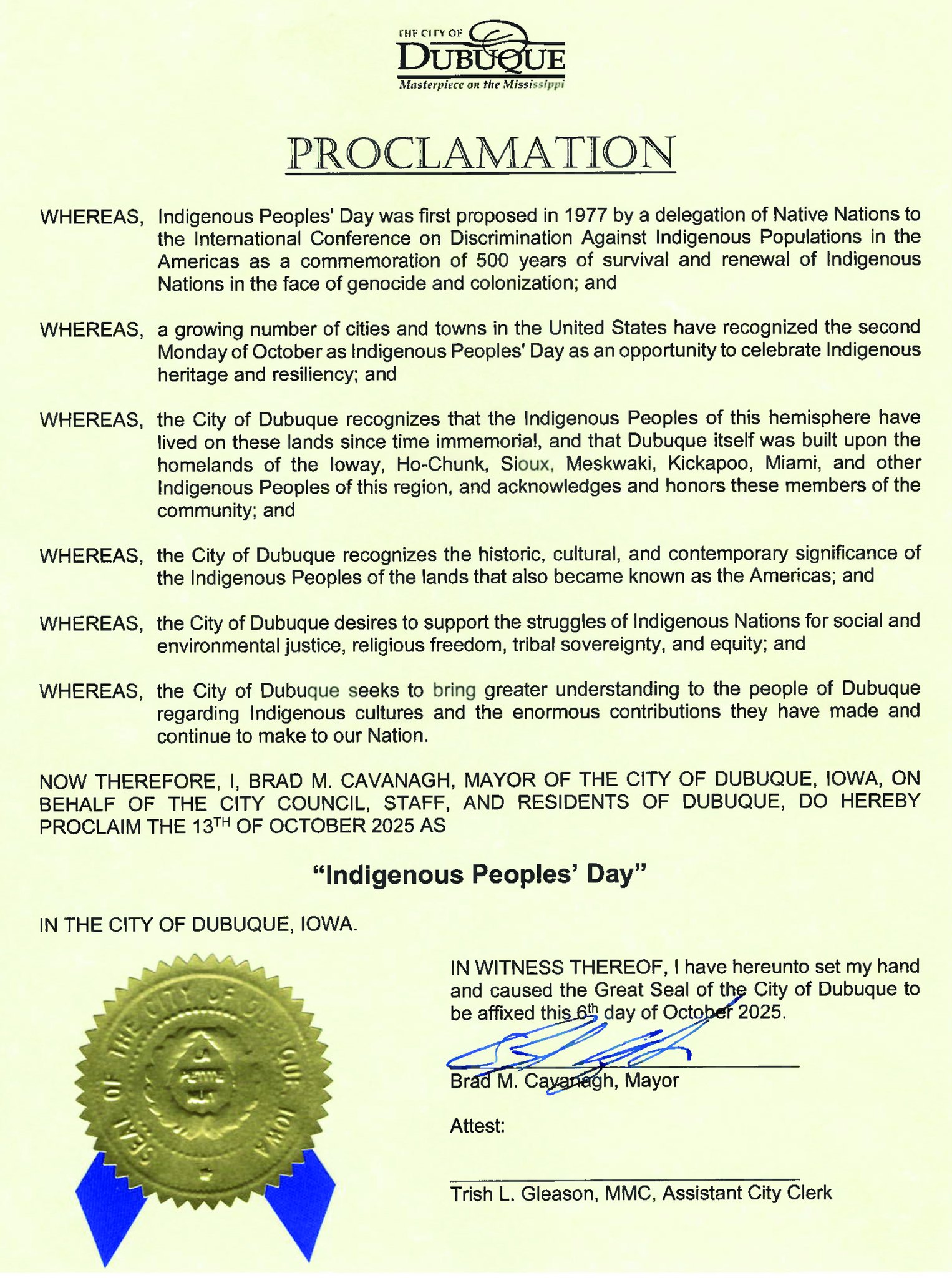 Indigenous Peoples’ Day: City of Dubuque Proclamation