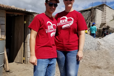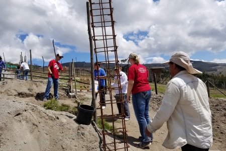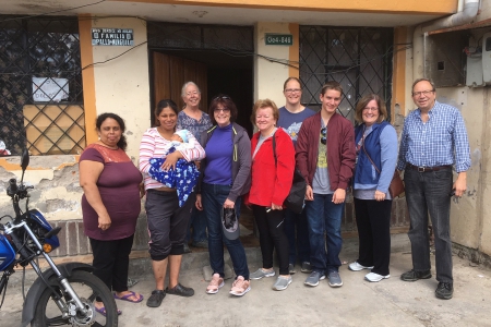 Danita Grant (l.), Liam Grant, Mary Ann Conzett, Carol DeCarvalho, Lori Ritz, and Mary and Tim Moothart helped build a house, experienced the hospitality of another culture, and learned about themselves and each other during a volunteer service trip to Ecuador.