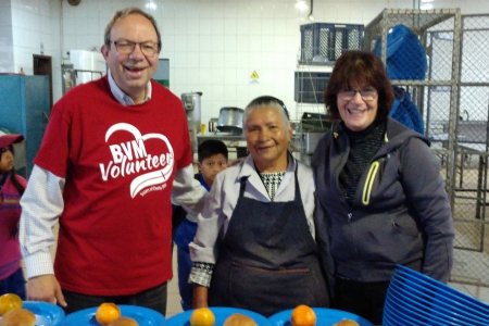 Our hearts were opened as we visited Working Families Happy for Change in the south of Quito, Ecuador. This center is run by Ecuadorian staff with spiritual guidance by Madre Miguel and Padre Juan. They serve about 60 to 70 percent Venezuelan refugees and the rest the working poor in Quito. The members receive nutritious meals, health care services, and after or before school programs for children.