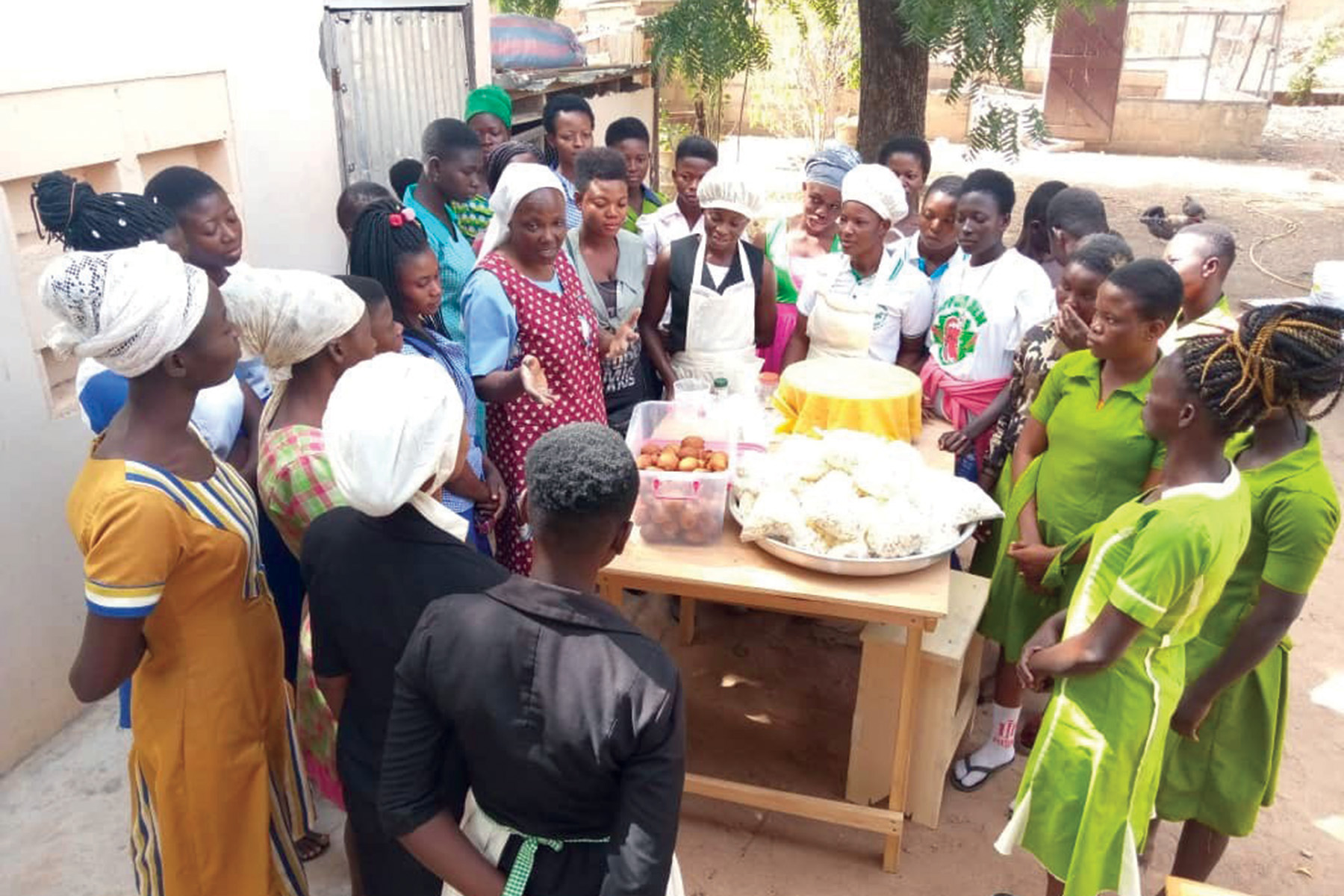 Participants in a skill acquisition program for young women in Bolgatanga, Ghana, learn to make…