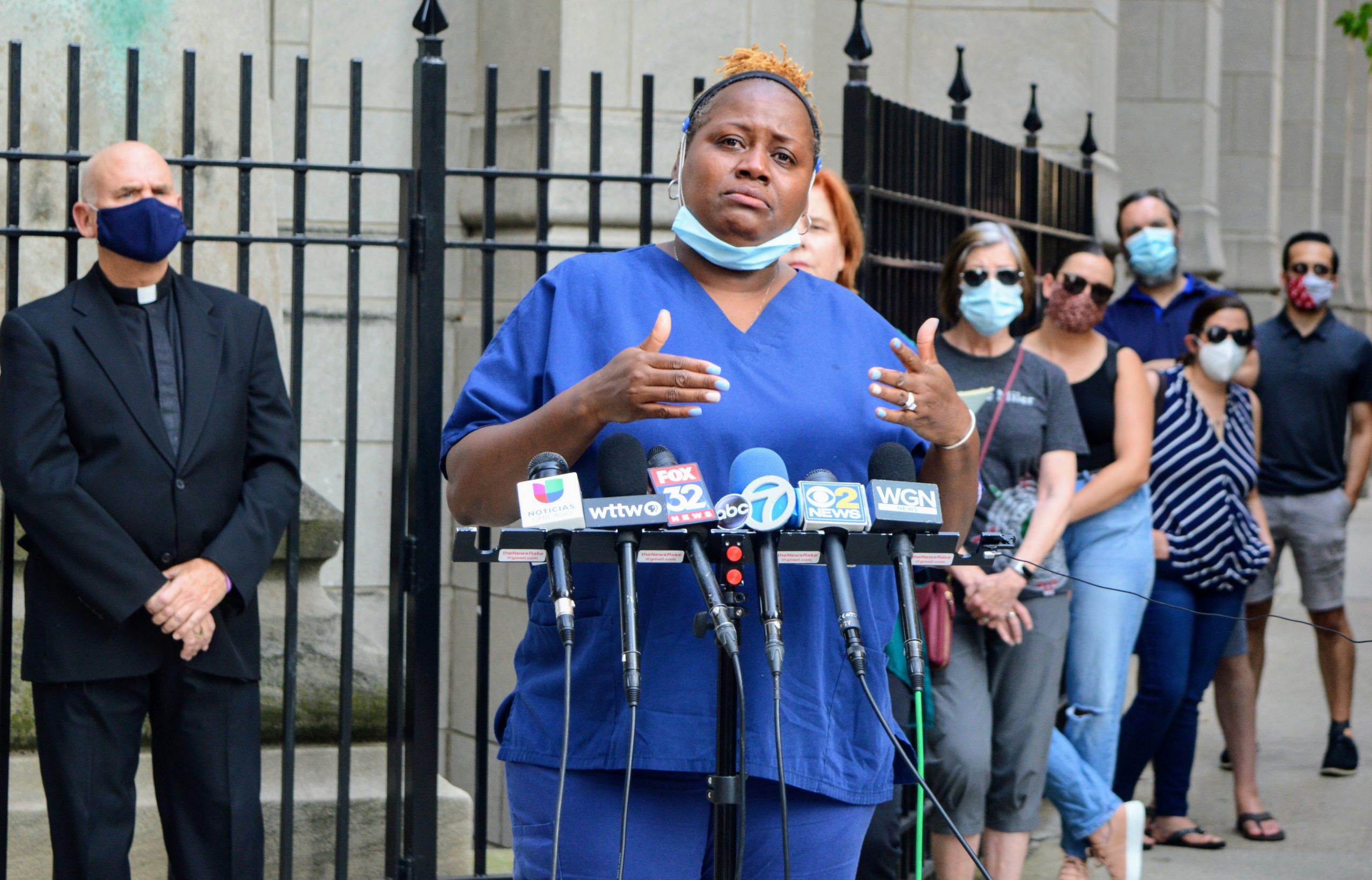 Angela Wright-Lewis, a nurse and grandmother of children at a Chicago Archdiocese school, pleaded to…
