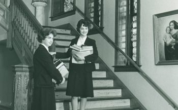 Students on the main staircase of St. Joseph Academy in Des Moines, circa 1961. by Mira Mosle, BVM As BVM Sandy Rodemyer’s siblings held a…
